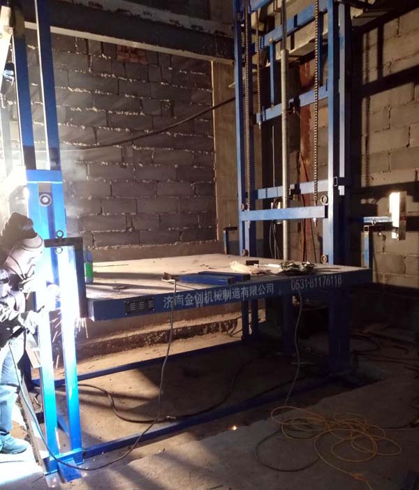液壓升降貨梯生產(chǎn)制造廠家-濟南金創(chuàng)機械制造有限公司,為威海客戶定做的升高13米,載重5噸的導(dǎo)軌鏈條式液壓升降貨梯,嚴(yán)寒天氣下,經(jīng)過安裝師傅加班加點的努力,昨天下午通過了客戶方的驗收工作。