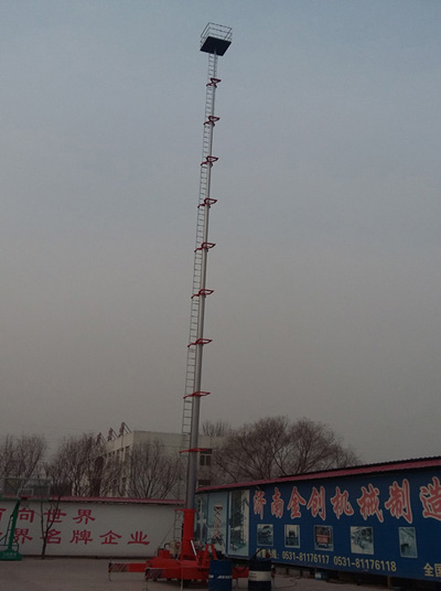 2、整機(jī)由平臺(tái)、伸縮油缸、單梯式或雙梯式防轉(zhuǎn)機(jī)構(gòu)、底盤(pán)油箱、支腿、行走輪等組成。