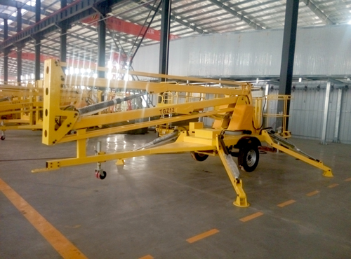 牽引折臂式液壓升降機(jī),動(dòng)力采用柴油機(jī)動(dòng)力
